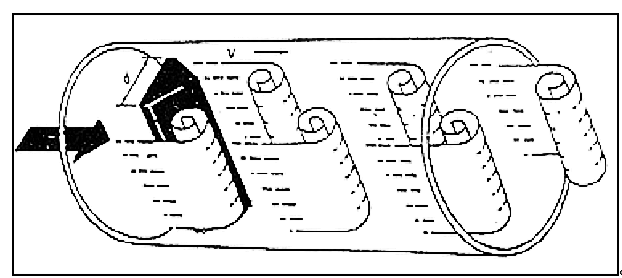 在流體中設(shè)置非流線型旋渦發(fā)生體(阻流體),則從旋渦發(fā)生體兩側(cè)交替地產(chǎn)生兩列有規(guī)則的旋渦,這種旋渦稱為卡門渦街,如圖(一)所示。
